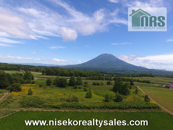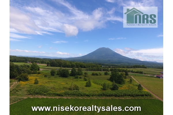 Large flat parcel of land among Farming Land in Niseko countryside just 2 mins. drive from Niseko ski lifts.