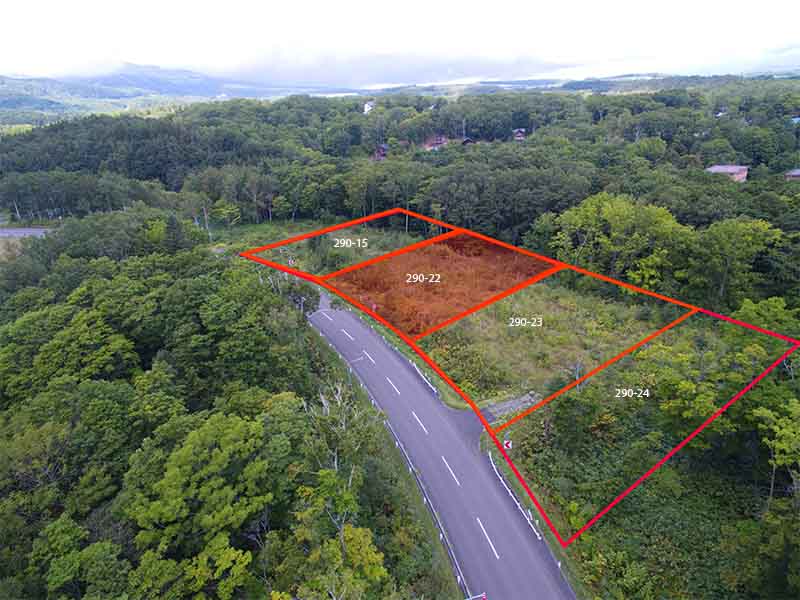 This is block 290-22, the second blocks of 4 blocks in this parcel of land at Hanazono Corner. This block is located the second closest to Hanazono Ski Resort on the centre of the outside apex of the road curve.