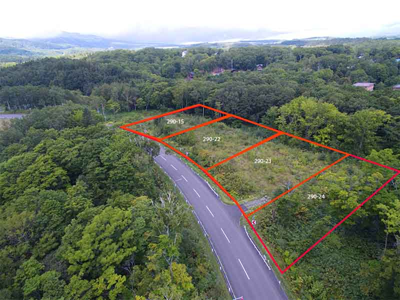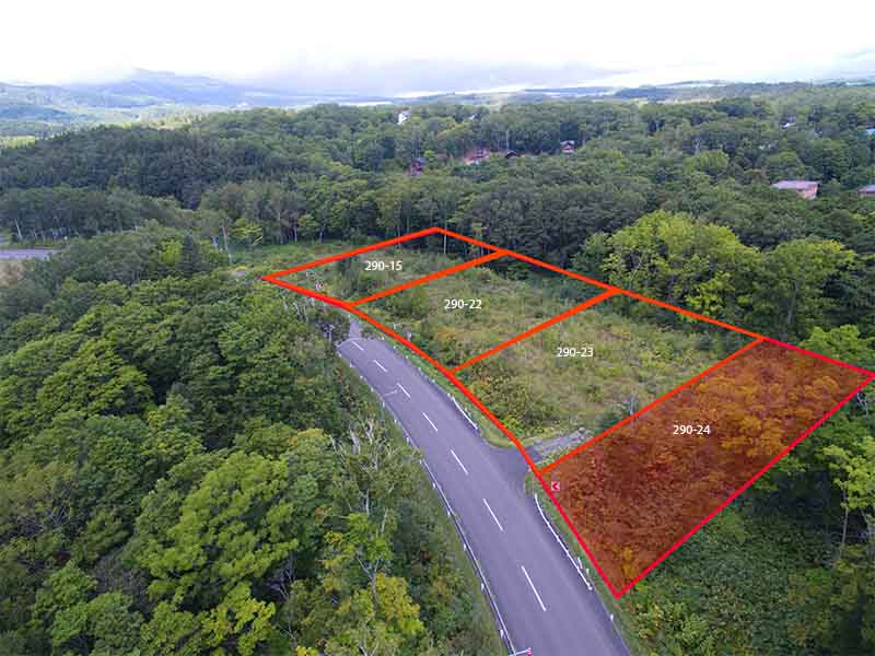 This is block 290-24, the forth block of 4 blocks in this parcel of land at Hanazono Corner. This block is located the on the exit of the curve as one heads back to Niseko Hirafu and Kutchan. A future building and upper stories would have views of the Hanazono ski resort Mountain and surrounding forests. With limited privately owned land in this area, it makes it anothe great  location for a commercial building and/or accommodation development.